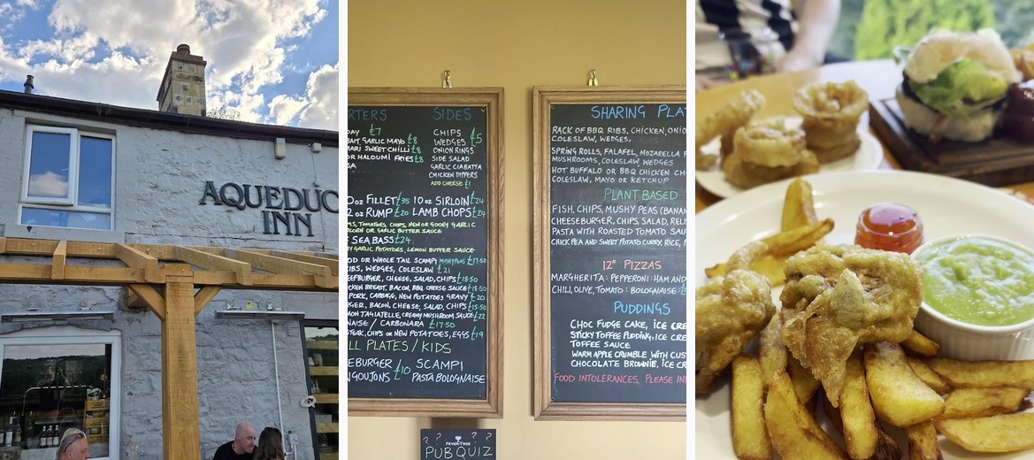It is well worth the short but steep walk from the canal up to the Aqueduct Inn. It was quiet when we arrived just after 12:00 and we were greeted and seated immediately with an amazing view! The place has a lovely atmosphere and we were made to feel very welcome by our host. We had 4 different meals and each was outstanding, fresh, piping hot and full of flavour! Thank you so much 😃